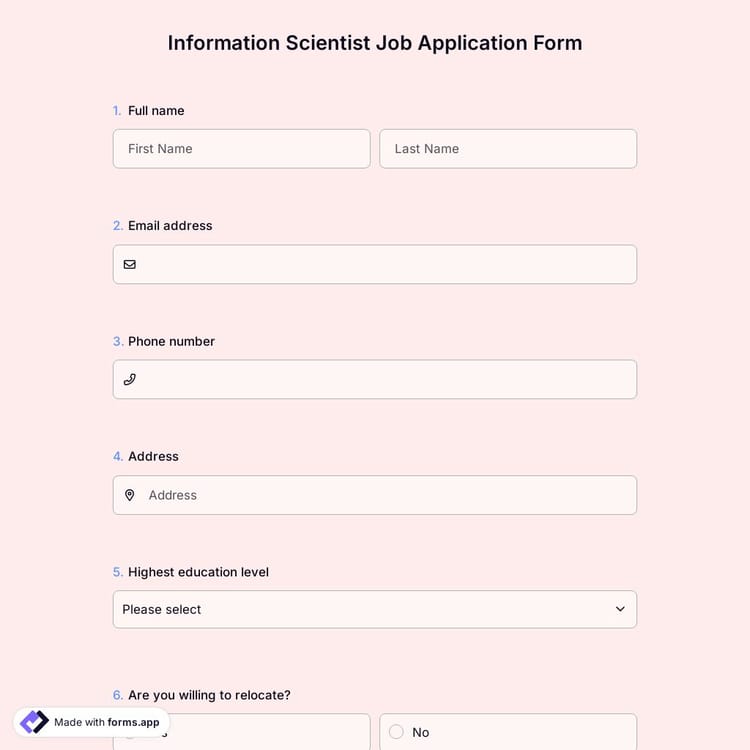 View this information scientist job application form and click on "use template" after making sure this is what you are looking for.
