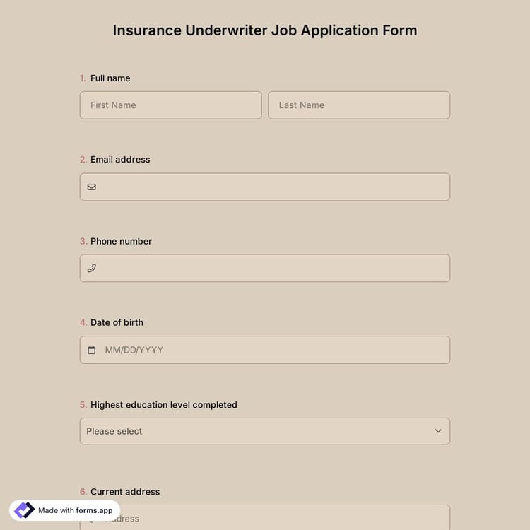 View this insurance underwriter job application form and click on "use template" after making sure this is what you are looking for.