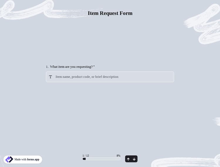 If you want to make the item process easier for everyone, simply use an online form. Collecting all the basic data in a single form is possible thanks to forms.app. To create your own item request form, click the “Use Template” button below!