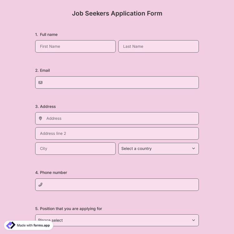 Want to create an excellent job seekers application form? forms.app offers you many customization options to build a form according to your own design. And it does this completely for free. Now start creating your form using the job seekers application form template below!