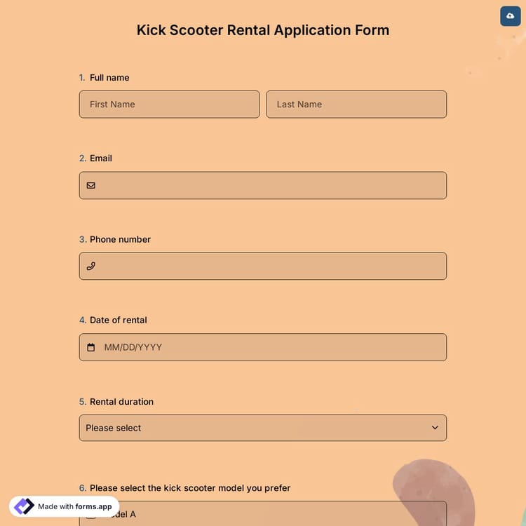 View this kick scooter rental application form and click on "use template" after making sure this is what you are looking for.