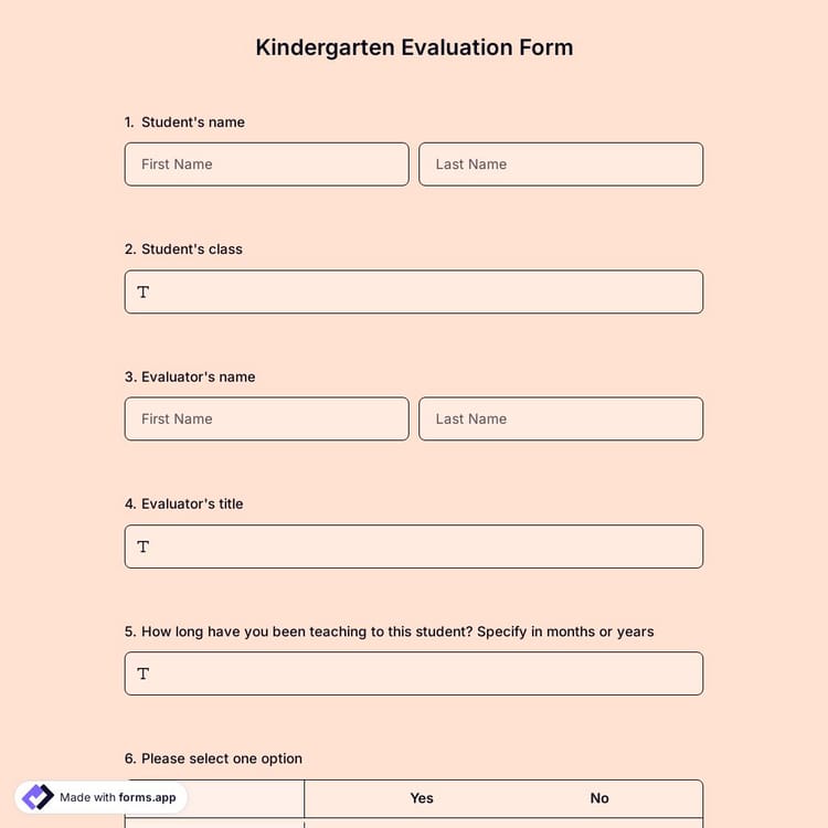 Would you like to find out more about children in kindergarten online? With the kindergarten evaluation form template, you quickly learn what children need. If you want to create forms without the need for coding knowledge, use forms.app in no time!