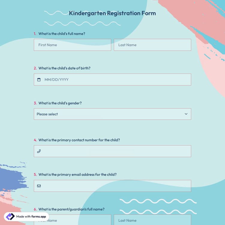 You can start by including your kindergarten's logo to make your form more personalized and professional-looking. Change questions and options the way you want by checking out the question types forms.app offers. You can modify the design and colors and the form content. It only takes a few adjustments to customize and visually design your form.Lastly, share the registration form you have prepared with your target audience via the form link or email addresses. You also have the option to embed your registration form on a specific web page and start gathering data.