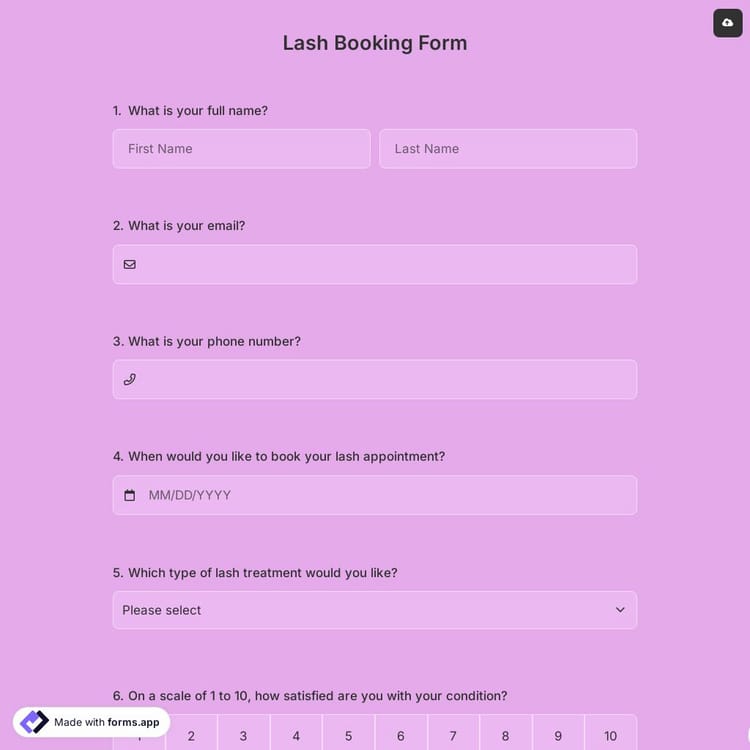 View this lash booking form and click on "use template" after making sure this is what you are looking for.