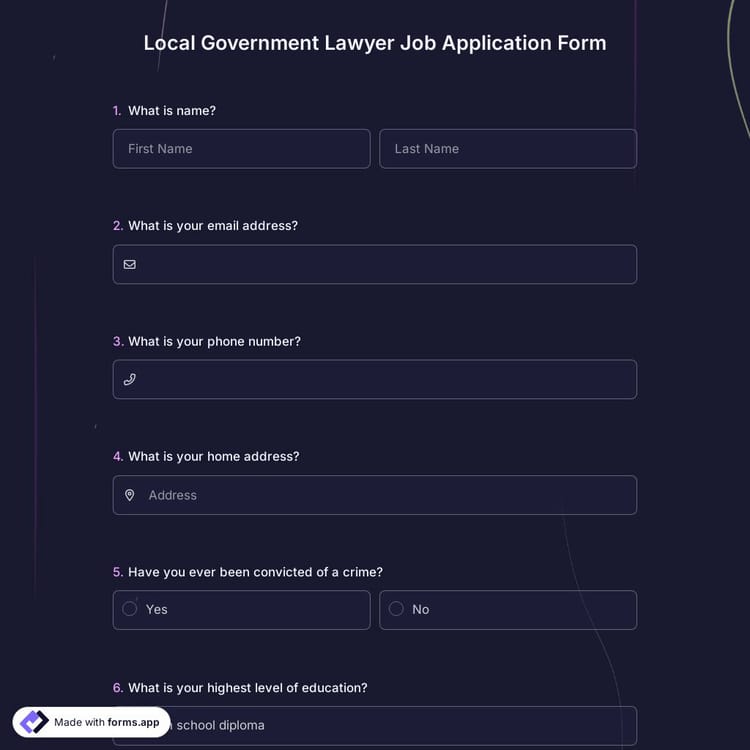 View this local government lawyer job application form and click on "use template" after making sure this is what you are looking for.