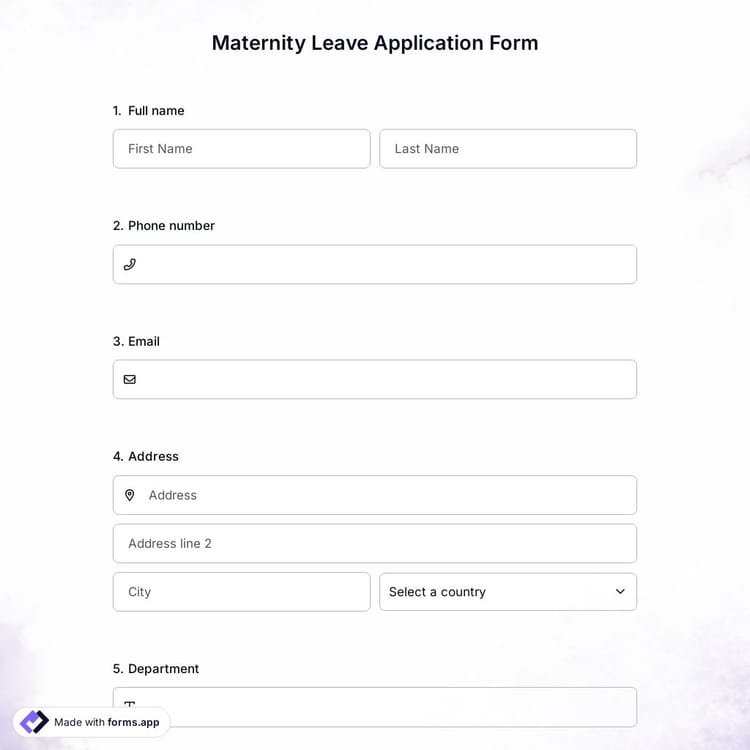 Forms for requesting maternity leave may be used for scheduling, timekeeping, acceptance of applications, and keeping a record of employee requests. You may customize the look of this maternity leave application form template in addition to suit your requirements. You can easily share this form through a URL or embed it on your website. Thanks to forms.app, everything is possible without using code!