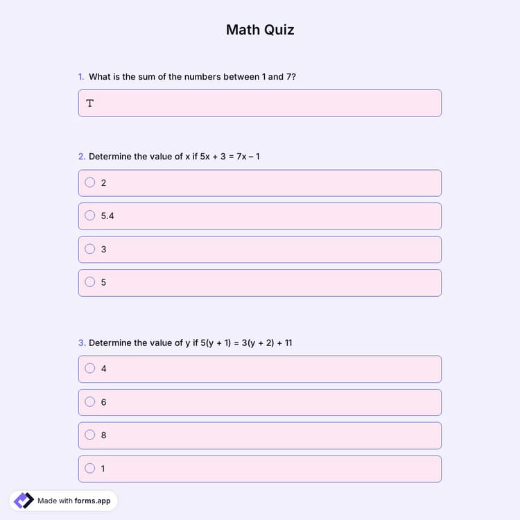Are you searching for a way to create a math quiz? If your answer is yes, then, you have now found the best quiz maker and math quiz template. Test student progress with online quizzes easily and effortlessly!