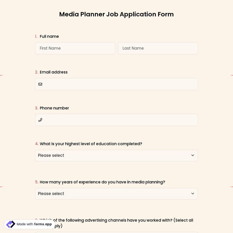 View this media planner job application form and click on "use template" after making sure this is what you are looking for.
