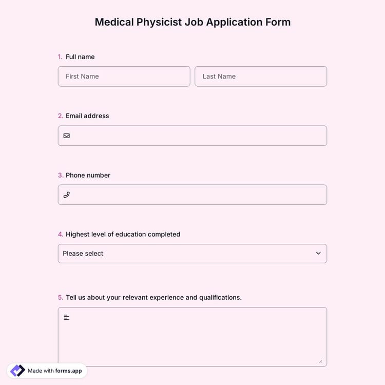 View this medical physicist job application form and click on "use template" after making sure this is what you are looking for.