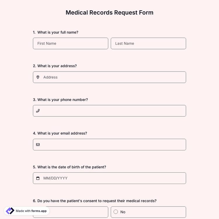 If you want to collect requests from patients, you can easily do so with an online form. Luckily, forms.app allows you to create your own medical records request form based on your team’s needs. You may quickly get started by clicking the “Use Template” button if you do not want to waste any time searching for a suitable form.