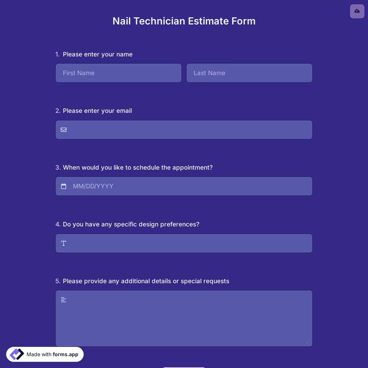 This nail technician estimate form is free and customizable