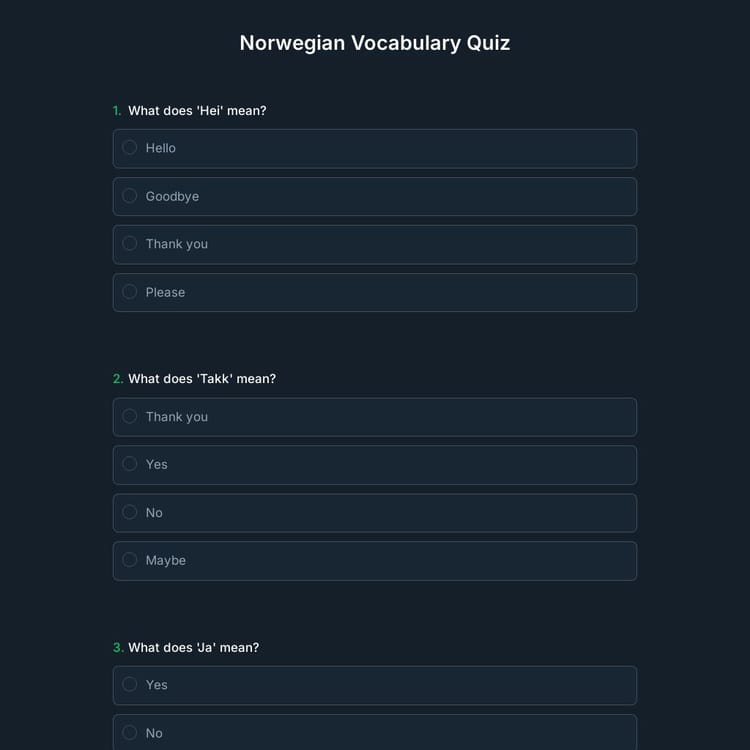 A Norwegian vocabulary quiz is an interactive tool designed to test and expand a person’s knowledge of Norwegian words and phrases. Whether you’re a language teacher or a learner, this quiz helps track progress and highlights areas for improvement. It’s perfect for both beginners and advanced students seeking to refine their linguistic skills.
