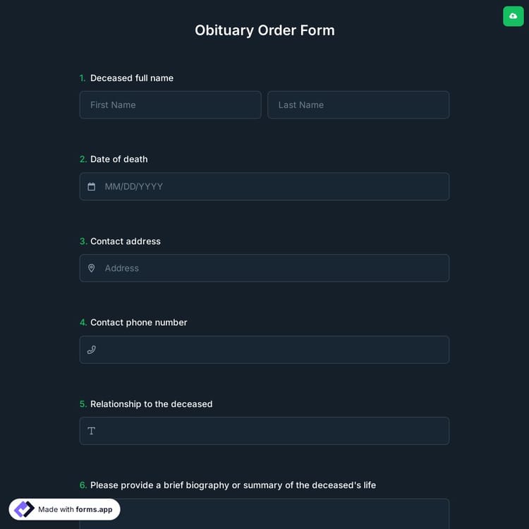 View this obituary order form and click on "use template" after making sure this is what you are looking for.