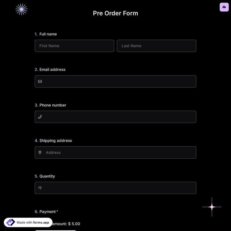 An order form helps businesses or individuals sell their products without even a website or pricy e-commerce platforms. So, it is only logical to create online order forms to start selling online. The first tool you need is an order form builder, like forms.app here. Then you can follow the steps below and finish creating your custom form: