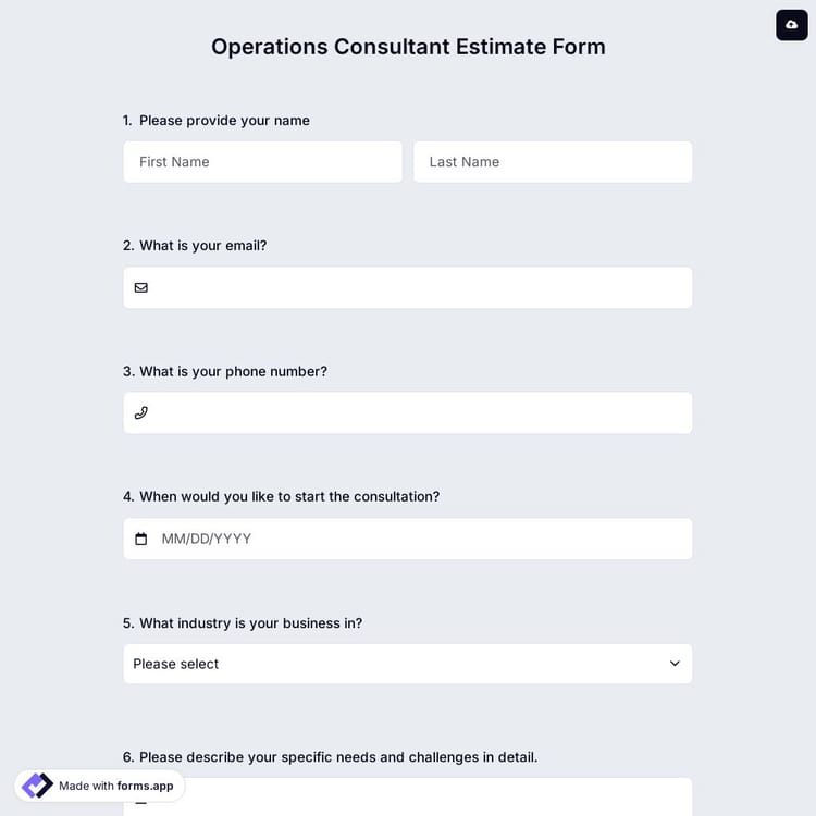 This operations consultant estimate form is free and customizable