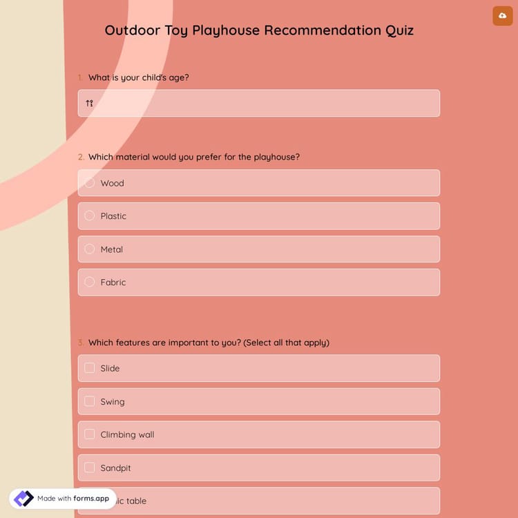 This outdoor toy playhouse recommendation quiz is free and customizable