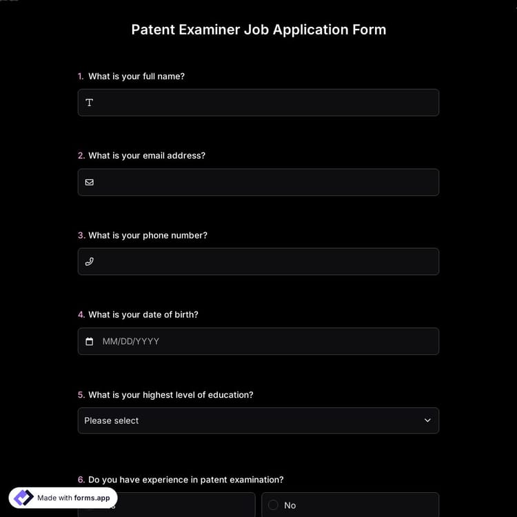 View this patent examiner job application form and click on "use template" after making sure this is what you are looking for.