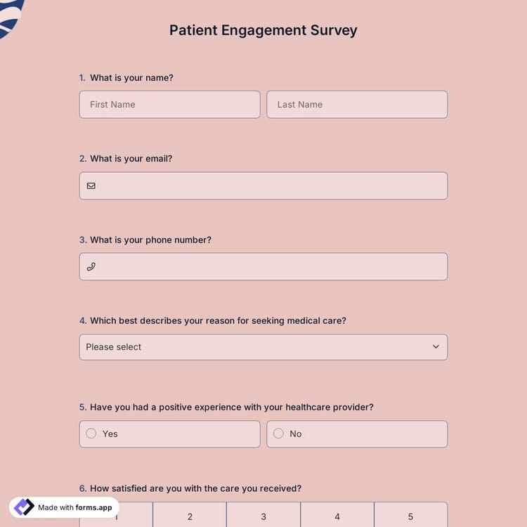 To maintain and promote public health, healthcare organizations should be able to satisfy patients. We can say that surveys, researches, and analyses in the field of health are vital tools. If you are trying to find a concept to measure patient engagement, you can access this free patient engagement survey template on forms.app.
