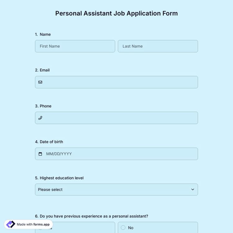 View this personal assistant job application form and click on "use template" after making sure this is what you are looking for.