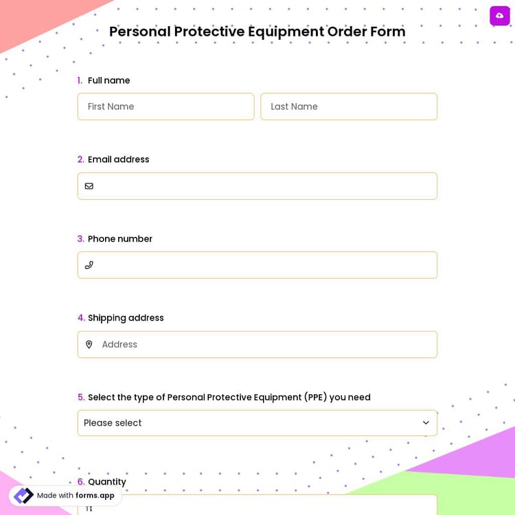 View this personal protective equipment order form and click on "use template" after making sure this is what you are looking for.
