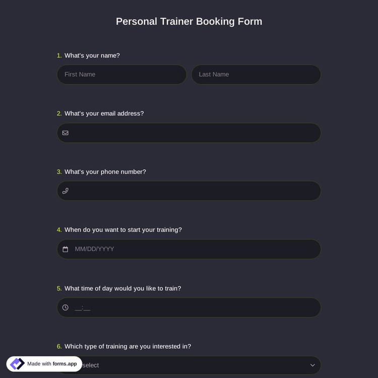 View this personal trainer booking form and click on "use template" after making sure this is what you are looking for.