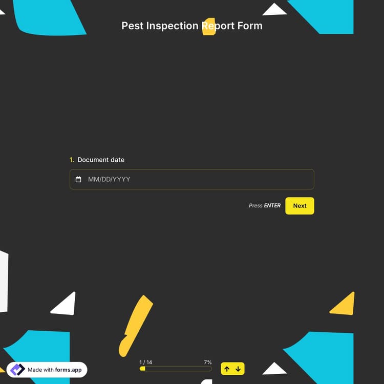 Something small, like pests, can turn our lives into a nightmare. We all want to deal with any pest-related problems in our houses immediately. A pest inspection form will ensure that the pest control services have done everything correctly. Get started with the free template on forms.app right now!