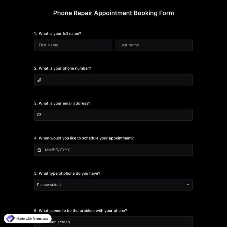 View this phone repair appointment booking form and click on "use template" after making sure this is what you are looking for.