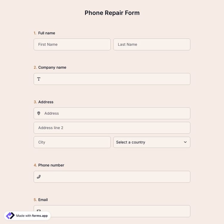 Phone repair forms can be easily used by large companies and institutions, as well as small businesses. This repair request form includes a field to enter contact details, phone model, and a problem description. You can customize the form as you like and create it for free!