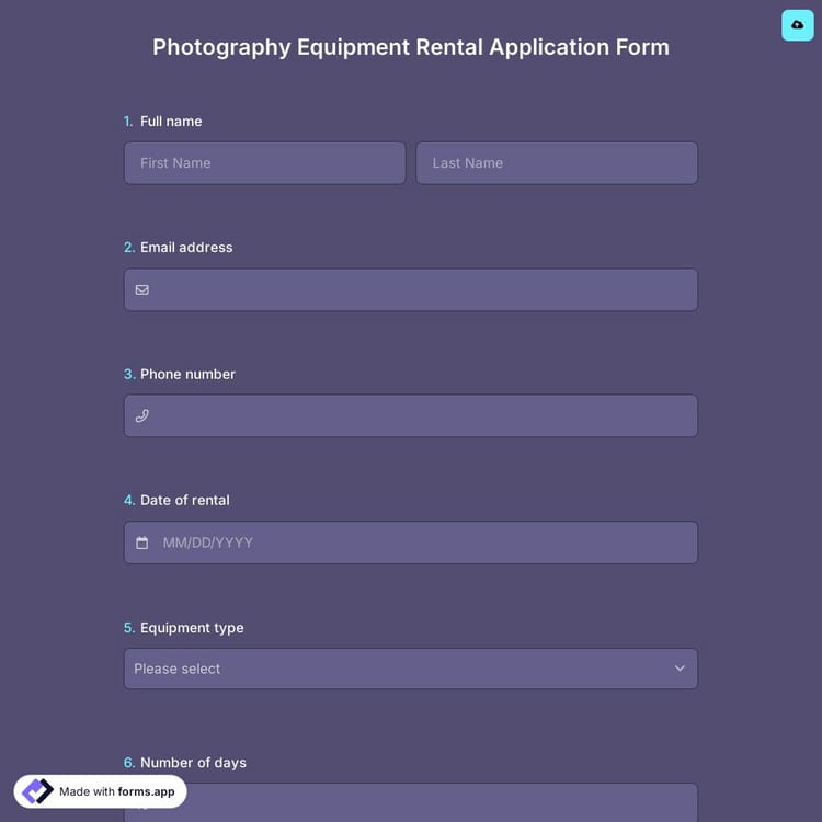 View this photography equipment rental application form and click on "use template" after making sure this is what you are looking for.