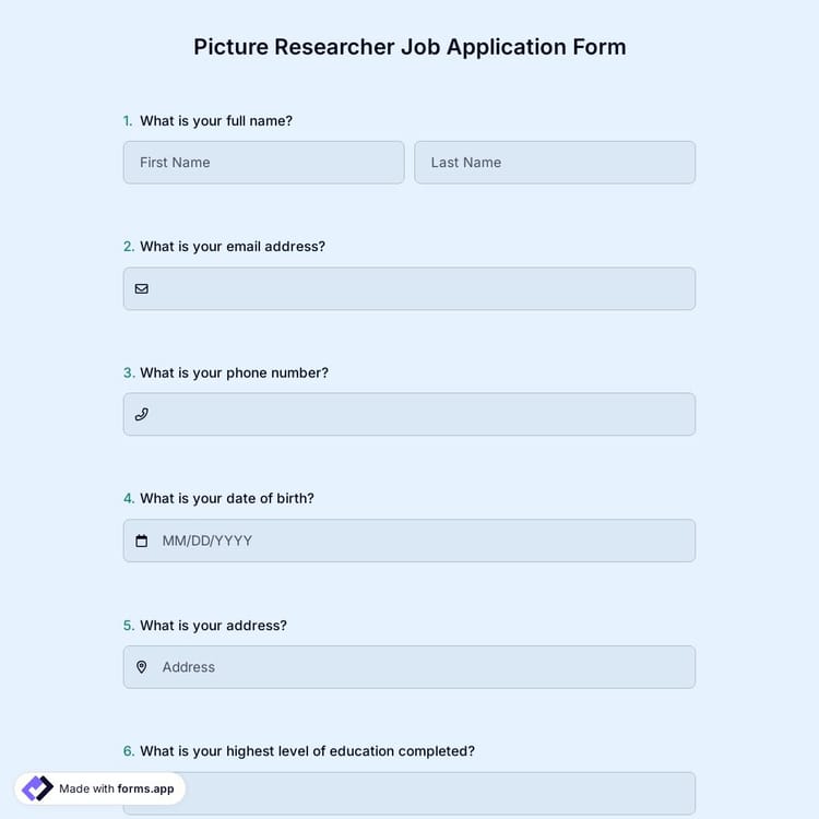 Whether you are creating a job application form or a membership registration form, forms.app offers you premium-quality templates for free. These application form templates come with common questions or form fields you would probably like to include in your form. Naturally, this will save you time and help you create better forms and surveys in a shorter time. So, choose one of our free form samples to create professional online forms today.