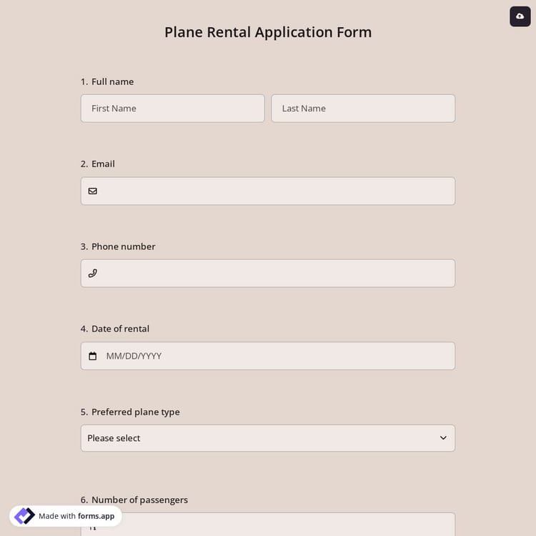View this plane rental application form and click on "use template" after making sure this is what you are looking for.