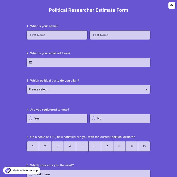 View this political researcher estimate form and click on "use template" after making sure this is what you are looking for.