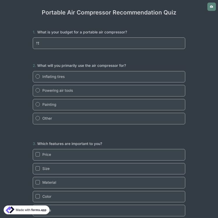 View this portable air compressor recommendation quiz and click on "use template" after making sure this is what you are looking for.