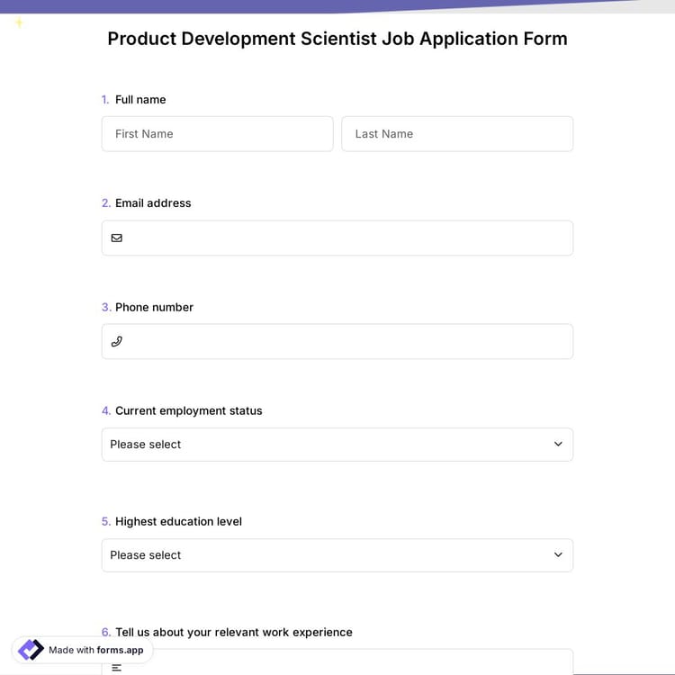 View this product development scientist job application form and click on "use template" after making sure this is what you are looking for.