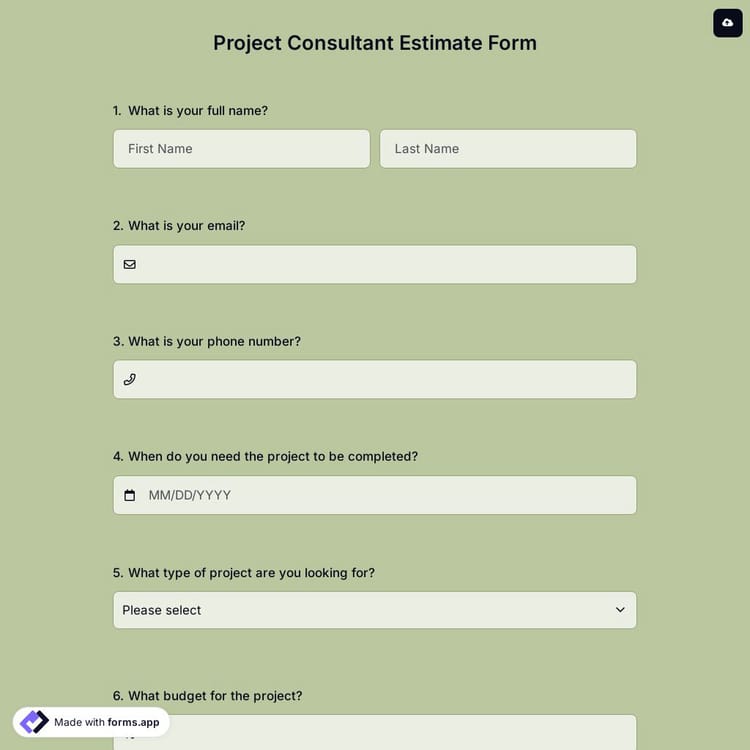 View this project consultant estimate form and click on "use template" after making sure this is what you are looking for.