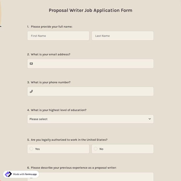 View this proposal writer job application form and click on "use template" after making sure this is what you are looking for.