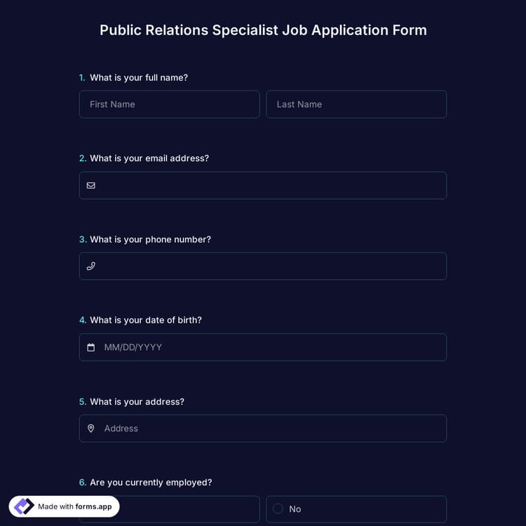 Whether you are creating a job application form or a membership registration form, forms.app offers you premium-quality templates for free. These application form templates come with common questions or form fields you would probably like to include in your form. Naturally, this will save you time and help you create better forms and surveys in a shorter time. So, choose one of our free form samples to create professional online forms today.