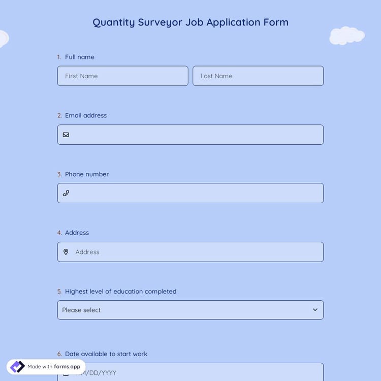 View this quantity surveyor job application form and click on "use template" after making sure this is what you are looking for.