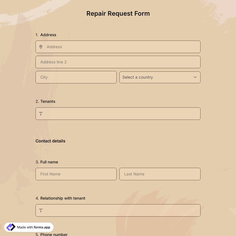 If you have a house and tenants live in it, you may need this form. The repair requests form template helps you understand what your tenant requires without the need for any coding knowledge. Get a quick start with the advanced features of forms.app!