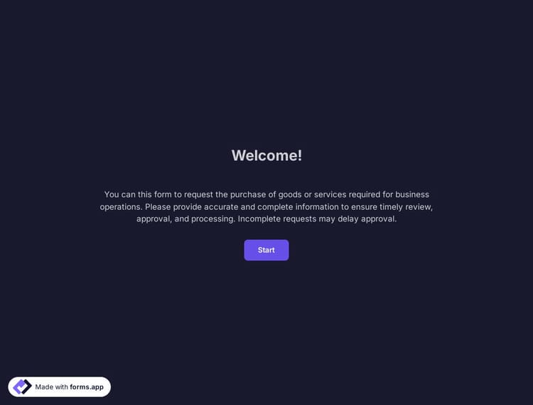 Just tell us how you would like to have a requisition form for your specific needs. forms.app’s free AI form builder will create a custom form template for you in seconds.