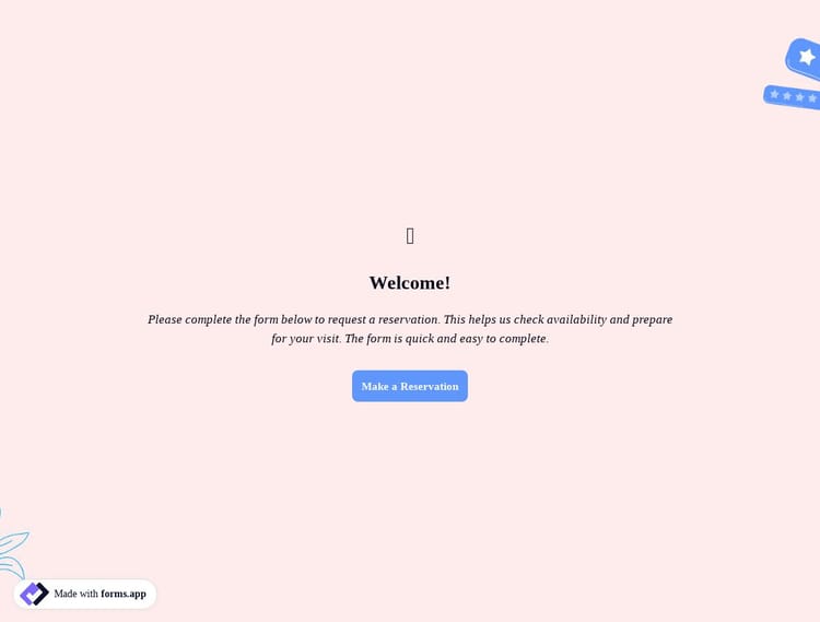 Making reservations is always useful for many reasons. But, most people don't just call a business to make a reservation anymore. Instead, they go online and see if there is an online booking system. It is more convenient and easy to use. As an online form builder, forms.app helps you to create your online form and allows people to make reservations and appointments.
