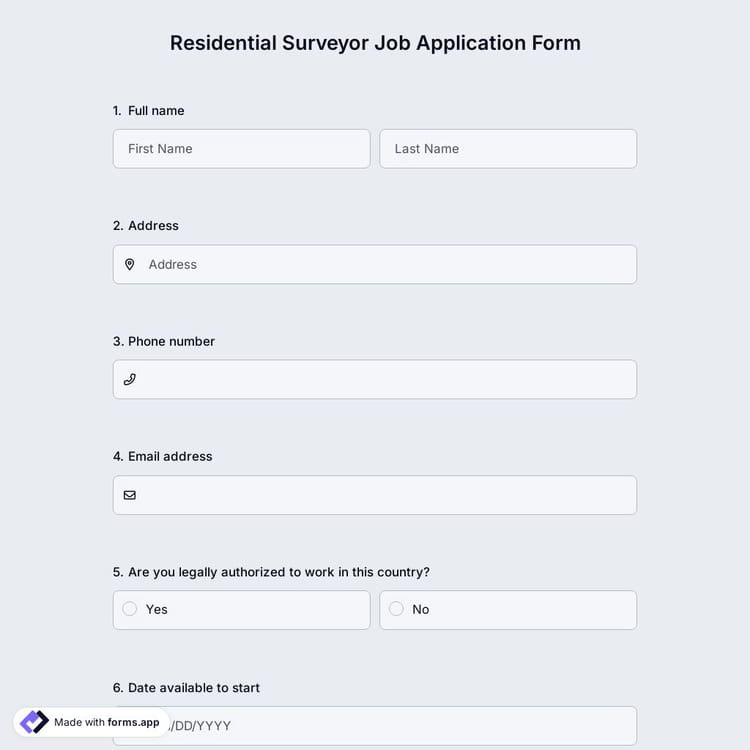 View this residential surveyor job application form and click on "use template" after making sure this is what you are looking for.
