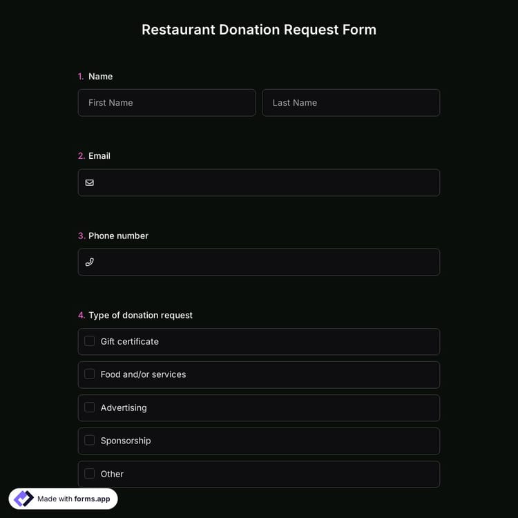 View this restaurant donation request form and click on "use template" after making sure this is what you are looking for.