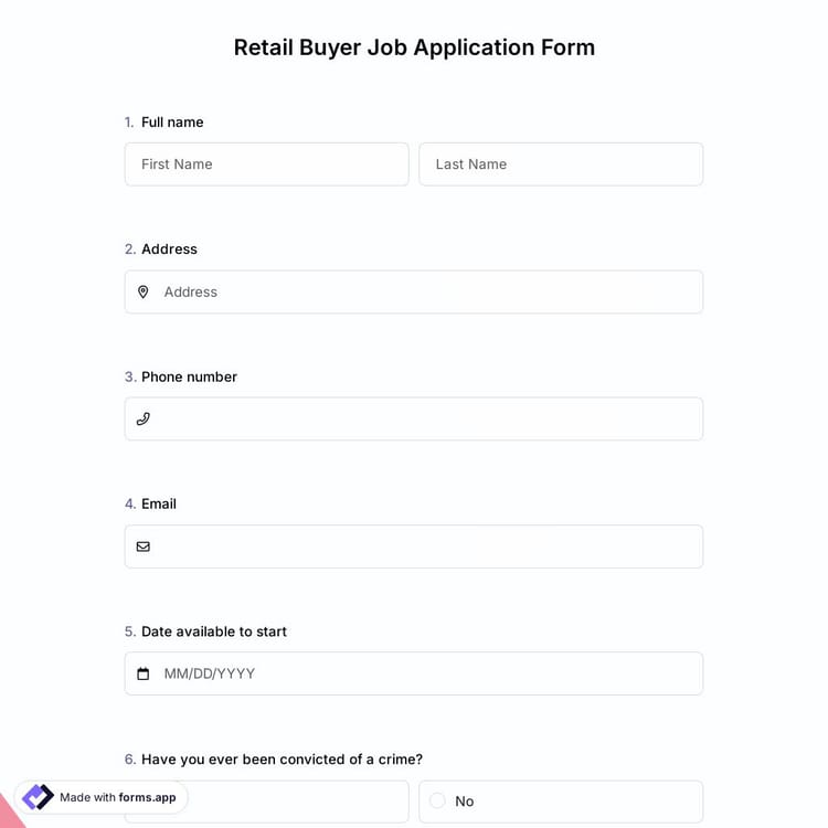 This retail buyer job application form is free and customizable