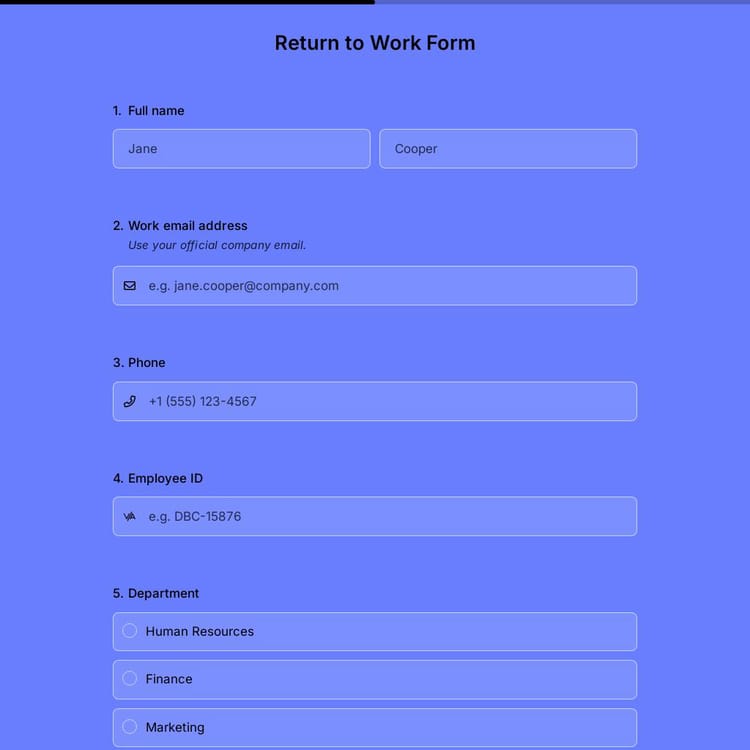 Whether you are an HR professional, manager, or employer, you can tailor everything in the form to your needs, including the questions. But, just to give you an idea of what you can ask, we have listed some of the most common questions used in return-to-work forms below.