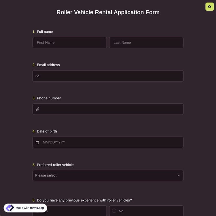 View this roller vehicle rental application form and click on "use template" after making sure this is what you are looking for.