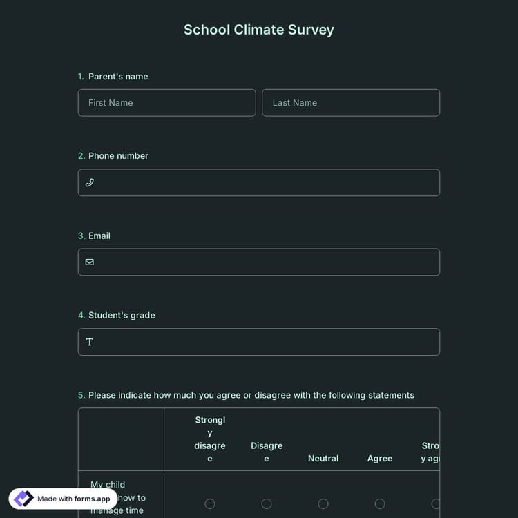 View this school climate survey and click on "use template" after making sure this is what you are looking for.