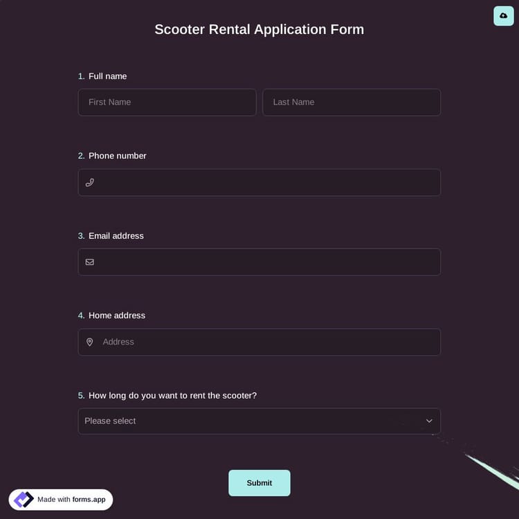 View this scooter rental application form and click on "use template" after making sure this is what you are looking for.