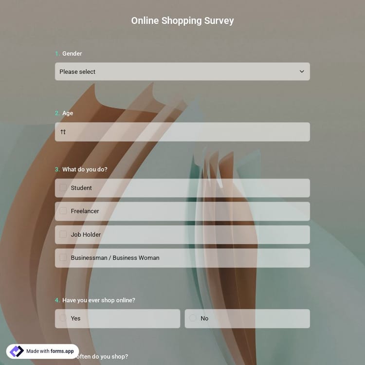 Shopping surveys are forms that measure the attitudes and experiences of shoppers in the e-commerce environment. You don't have to worry about how to make an online shopping survey because it is very easy to do with the free online service provided by forms.app. Now, if you want to improve your online shopping, you can start creating your survey using the template below.