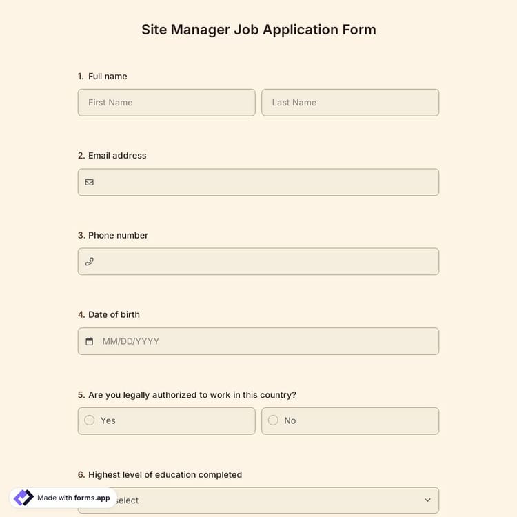 This site manager job application form is free and customizable